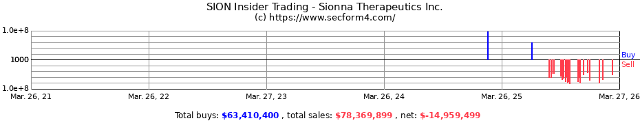 | 2025-11-24 Sale | 2025-11-26 6:41 pm | Sionna Therapeutics Inc. | SION | Thompson Peter A. Director | 108,073 | $44.55 | $4,814,205 | 3,596,886 (Indirect) | View |