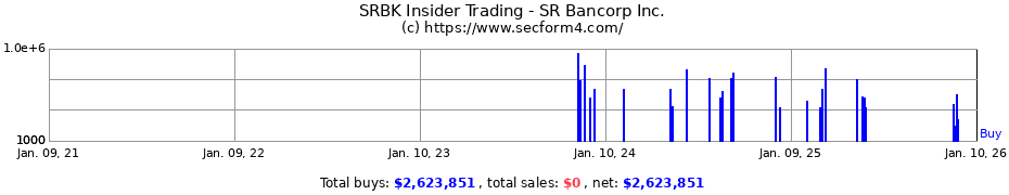 | 2025-03-12 Purchase | 2025-03-12 3:26 pm | SR Bancorp Inc. | SRBK | Taylor William P CEO | 2,000 | $11.51 | $23,022 | 215,406 (Indirect Direct) | View |