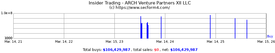 2023-09-19 Purchase | 2023-09-20 06:16 am | Neumora Therapeutics Inc. | NMRA | ARCH Venture Partners X LLC ARCH Venture Partners XII LLC ARCH Venture Partners XII L.P. ARCH Venture Fund XII L.P. CRANDELL KEITH GILLIS STEVEN NELSEN ROBERT BYBEE CLINTON 10% Owner | 1,500,000 | $17 | $25,500,000 | 3,624,143 (Indirect) | View |